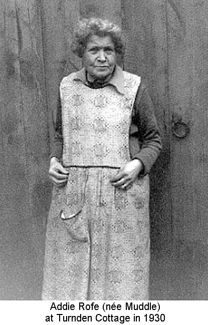 John and Hope’s eldest child was Elizabeth Adelaide Muddle, known as Addie, who was born at Crowborough (probably at Sweethaws) in Rotherfield Parish, Sussex, and baptised at the Parish Church of St Margaret the Queen in nearby Buxted, Sussex on 29 July 1855. In the census of 7 April 1861 Addie, at the age of 6, was living with her parents at Sweethaws. Then in the census of 2 April 1871 Addie, now aged 15, was living with her parents at Bayham in Frant, Sussex. In the census of 3 April 1881 Addie, at the age of 25, was living with her parents at the Peacock Beer House in Iden Green near Goudhurst in Kent. It was probably Addie who was the Miss Muddle, whose parents kept the Peacock Inn, who was in partnership was a Miss Spice in a dressmaking business at Goudhurst, with a workroom in Holly Villas opposite the Chequers Inn.[2] When she was 34 years old Elizabeth married 25-year-old William Rofe, known as Will, at the Parish Church of St Dunstan in Cranbrook, Kent on 20 April 1889. At the time of their marriage Will was a labourer living at Cranbrook and Addie was living with her parents at Hawkhurst. Will was the son of Samuel and Sarah Rofe; he was born on 4 November 1863 at Turnden Cottage in Cranbrook, where his parents and grandparents had lived for many years; and he was baptised at St Dunstan's Church in Cranbrook on 31 January 1864. Will and his brothers, and their father Samuel, all worked as labourers on the Glassenbury Estate, and the Peacock was the nearest pub to the Glassenbury Estate for them to quench their thirst. So this was probably where Will first met Addie and ended up marrying her a year after she moved with her parents to Hawkhurst.