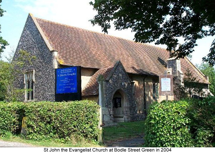 John Muddle married Mary Jane Billes at the Parish Church of St Dunstan in Mayfield, Sussex on 14 October 1882. They had to get married as their first child was due, being born just under two months later. John and Mary lived at Stockyards Farm in Five Ashes (then part of Mayfield Parish), where their six eldest children were born between 1882 and 1893. The 1890 edition of Kelly's Directory of Sussex and the 1891 edition of Kelly's Directory of Kent, Surrey & Sussex both listed John Muddle as a farmer at Stockyards Farm. In the census of 5 April 1891 they were living at Stockyards Farm with their then four children and John was a farmer. They had 15-year-old Emily Sade as a live-in general domestic servant, and 26-year-old farm assistant John B Billes, who was Mary Jane's brother, was boarding with them. Also living at Stockyards Farm were Mary Jane's father and stepmother, 82-year-old retired farmer Joseph Billes and his young 27-year-old wife Maria. John is thought to be the John Muddle who was recorded as being one of the bell-ringers at St Margaret the Queen Church in Buxted in 1887; he must have had a strong connection with the church as all his children were baptised there, even though they lived in Mayfield Parish. In about 1895 they moved to Criers Farm in Five Ashes where their seventh child was born in 1897. It is thought to be about this time that, according to family tradition, John fathered an illegitimate daughter by a Miss Collins of Mayfield, but no documentary confirmation of this has been found. The 1899 edition of Kelly's Directory of Sussex listed John Muddle as a farmer at Criers Farm in Five Ashes. In the census of 31 March 1901 they were living at Criers Farm with their six youngest children; their eldest daughter was in service at Tunbridge Wells. John was a farmer and had his eldest son working with him on the farm. By 1903 they had moved to Summertree Farm at Bodle Street Green in Sussex, as that was where their daughter Christina died that year, aged 14. The 1905 edition of Kelly's Directory of Sussex listed John Muddle as a farmer at Summertree Farm in Bodle Street Green. Later they moved to Pebsham Farm at Bodle Street Green. It was while they were at Bodle Street Green that their daughter Annie came home to have her two illegitimate sons, Henry and Fred, born in 1907 and 1909, and which she left there for John and Mary Jane to bring up. In the census of 2 April 1911 they were living in a cottage at Bodle Sreet Green and John was now a farm labourer not a farmer. Living with them were their youngest child, daughter Kate, their two grandsons, Henry and Fred, and John B Billes was back boarding with them.