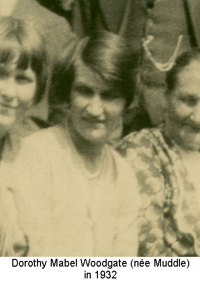 George and Mary Ann’s eldest child was Dorothy Mabel Muddle who was born at Hadlow Down in Sussex, and baptised at the Parish Church of St Mary the Virgin in Buxted, Sussex on 3 June 1900. In the census of 31 March 1901 Dorothy, at the age of 11 months, was living with her parents at Lime Cottages in the Pound Green area of Buxted. Then in the census of 2 April 1911 Dorothy, now 10 years old, was living with her parents at Lime Cottages. When she was 23 years old Dorothy married 27-year-old Nelson Woodgate at the Parish Church of Holy Trinity in High Hurstwood, Sussex on 19 April 1924. Nelson was the son of William and Naomi Kate Woodgate; he had been born at High Hurstwood and baptised at the Parish Church of Holy Trinity in High Hurstwood on 4 July 1897. Nelson and Dorothy initially lived in one half of Stone Cottage in Royal Oak Lane at High Hurstwood where they had two children, a son born in 1924 and a daughter 1928, at which time Nelson was recorded as being a carpenter. When their eldest child started school in 1929 they were still living at Stone Cottage, but by the time their other child started school in 1933 they had moved a few yards up Royal Oak Lane to 3 Cherry Gardens Cottages. Their final move in early 1950 was back down Royal Oak Lane to 4 Maypole Cottages on the newly built Council Housing Estate. When his son married in 1951 Nelson was described as being a general builder's foreman. He was a foreman for the building firm of Holcombe that had built the Maypole Cottages estate.